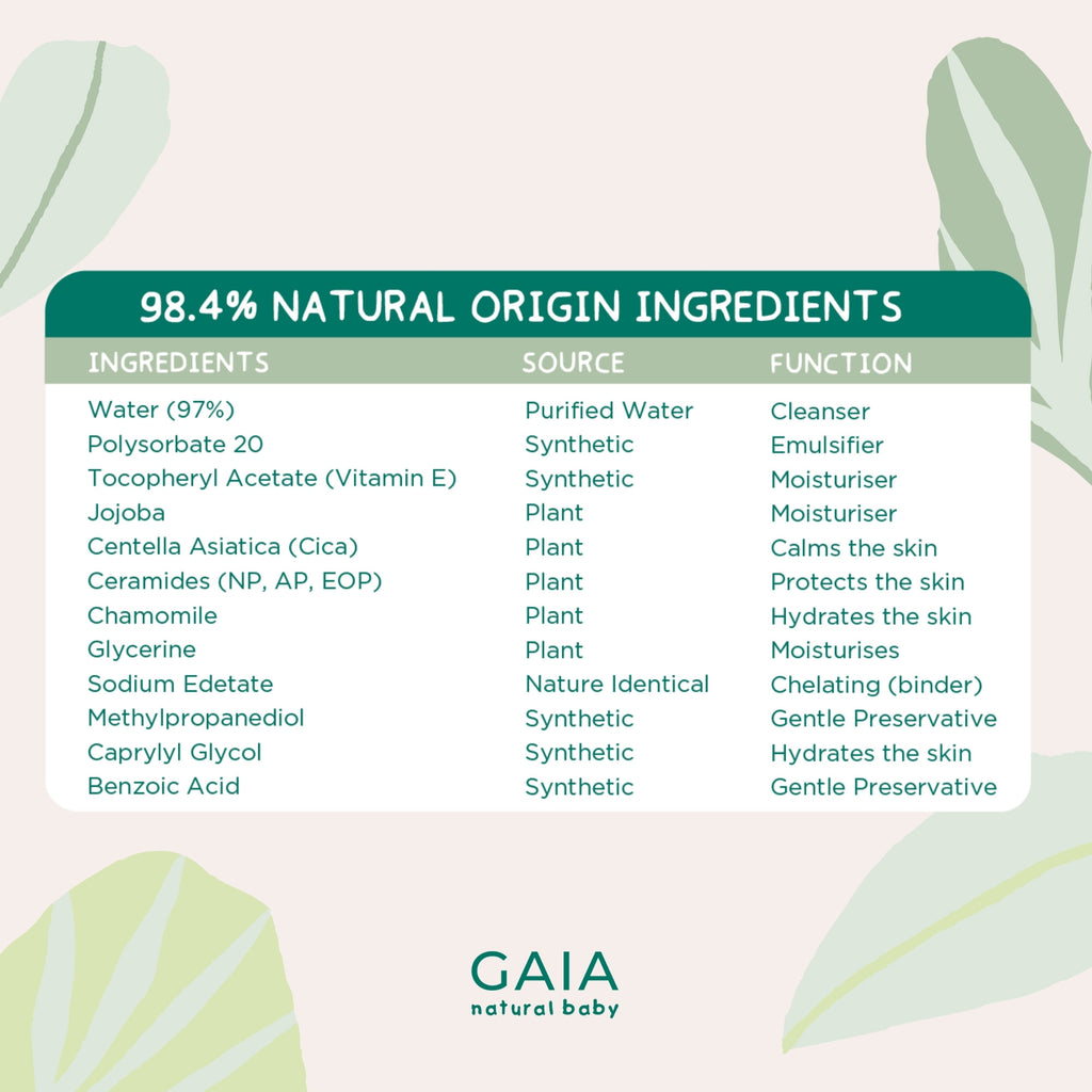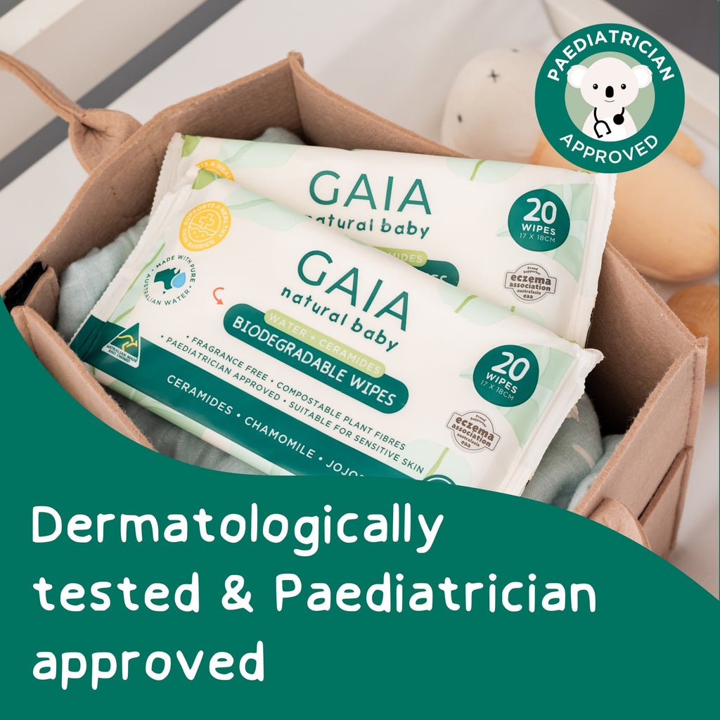 GAIA Natural Baby Water + Ceramides Biodegradable Wipes 20pk