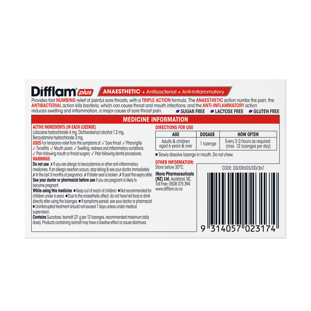 Difflam Plus Anaesthetic Blackcurrant Lozenges 32s