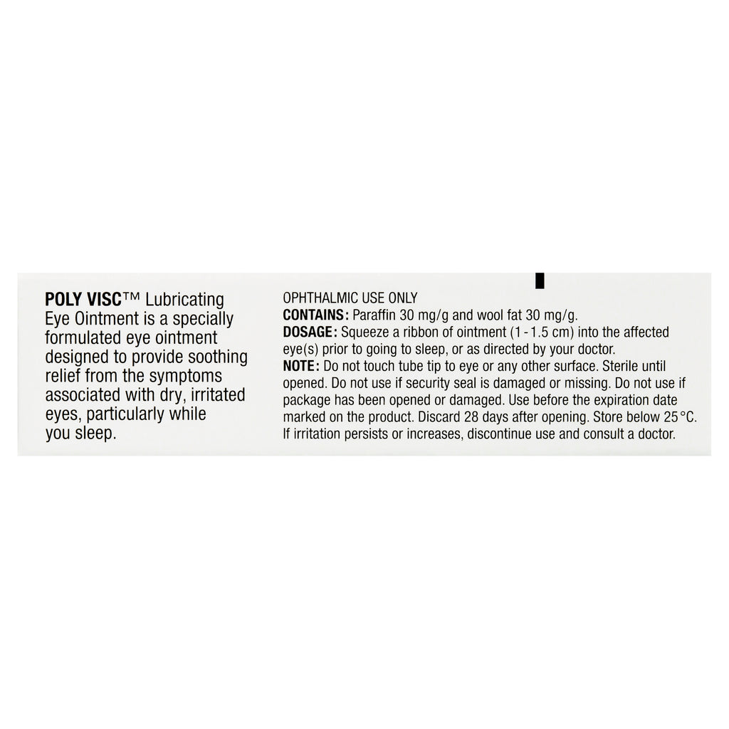 Poly Visc Lubricating Eye Ointment is a specially formulated eye ointment designed to provide soothing relief from the symptoms associated with dry, irritated eyes, particularly while you sleep.