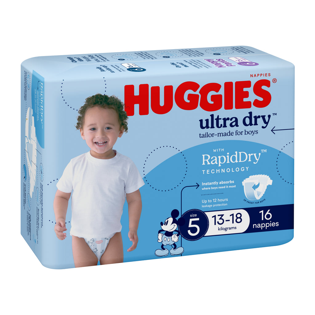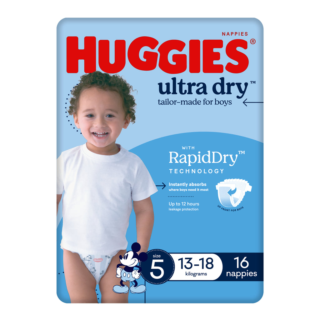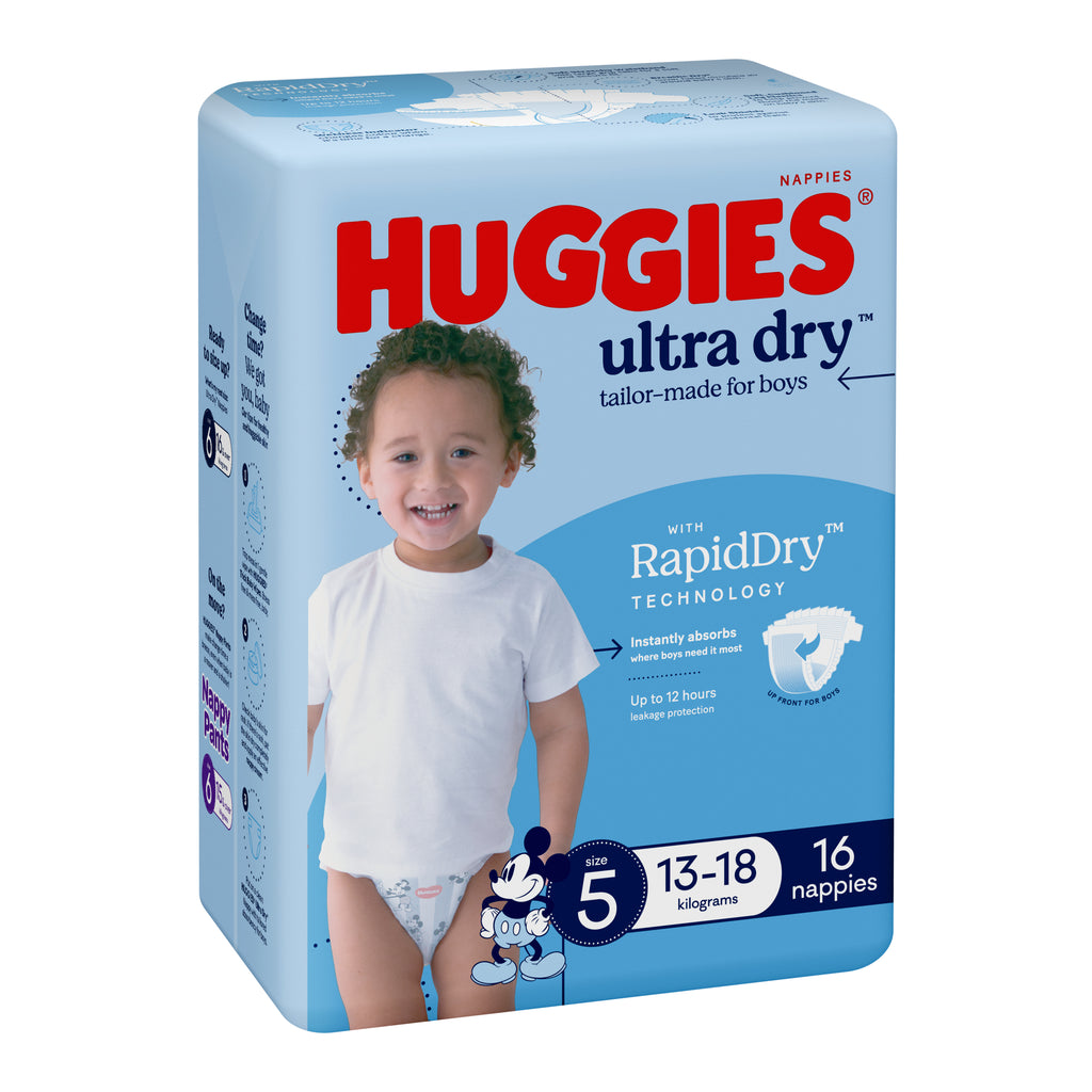 Huggies Ultra Dry Nappies Boys Size 5 (13-18kg) 16 Pack