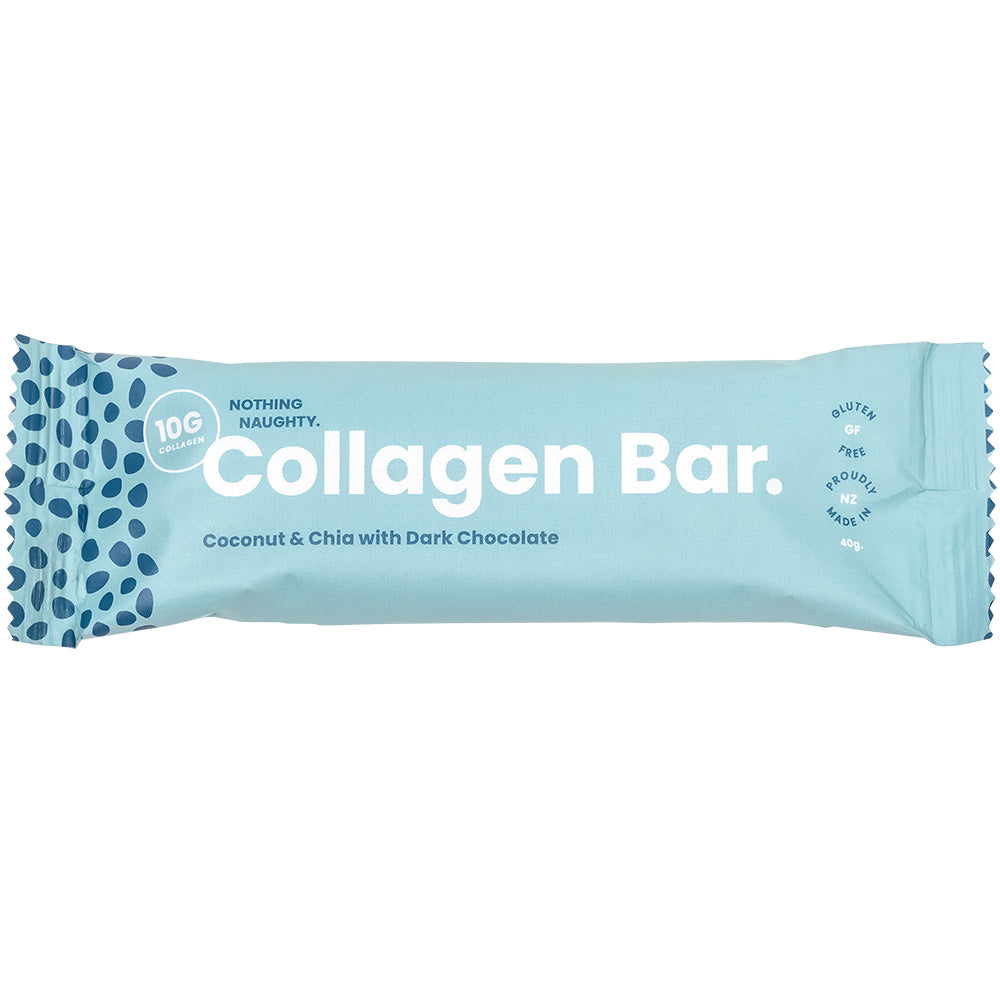 GLUTEN & DAIRY-FREEIt's what's inside that counts. 7.5g of collagen in a delicious coconut and chia bar, lightly coated in dark chocolate. The convenient way to get a collagen boost, perfect for the handbag, gym bag, or workplace for a snack on the go.