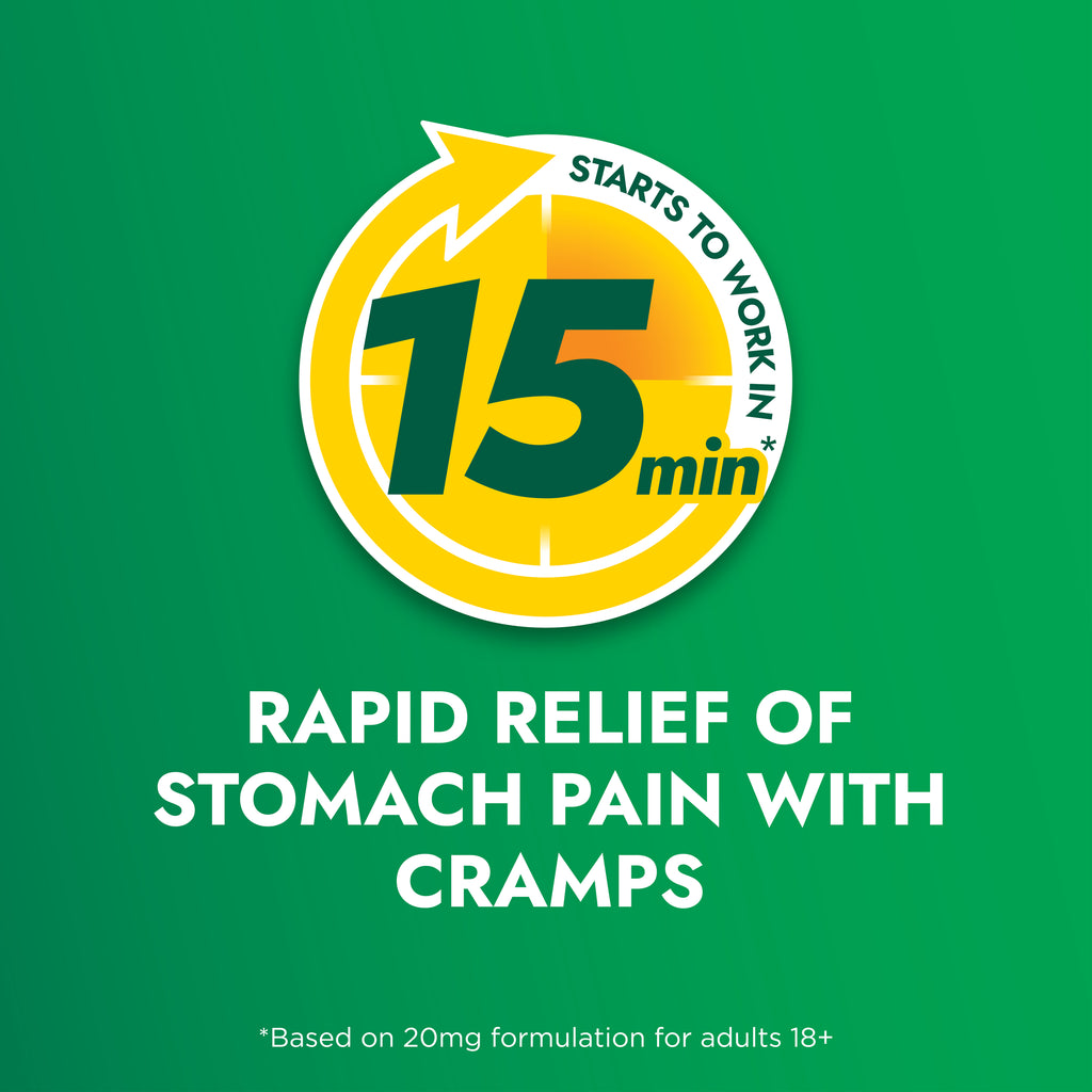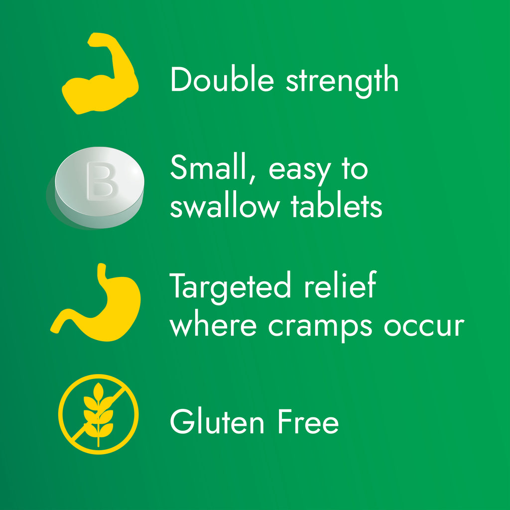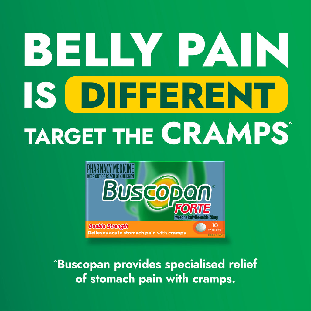 When it comes to stomach pain with cramps Buscopan Forte works differently to common pain relievers like paracetamol and ibuprofen by relaxing the cramping stomach muscles to relieve the pain. It’s gentle on the stomach and provides fast relief in as quickly as 15 minutes*.