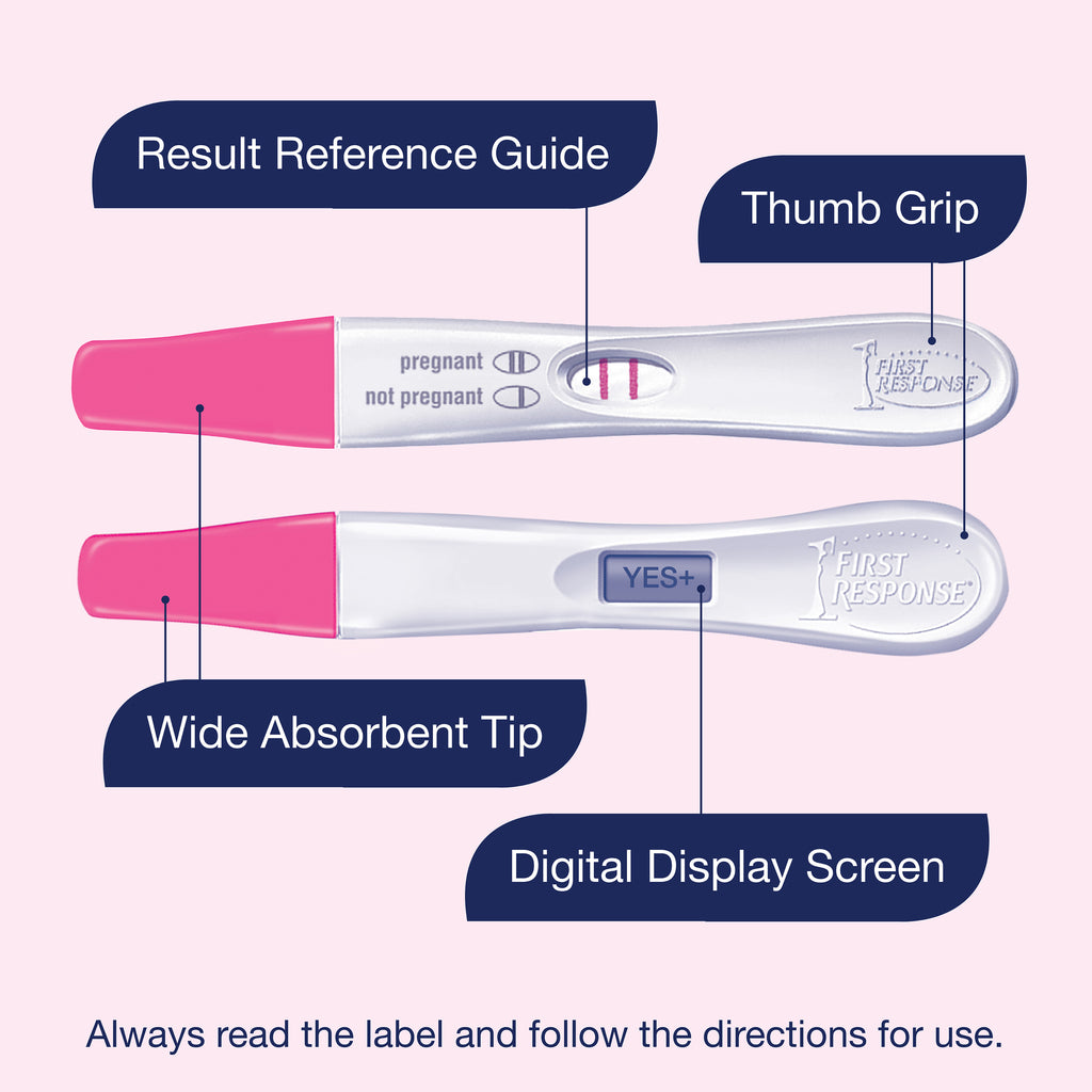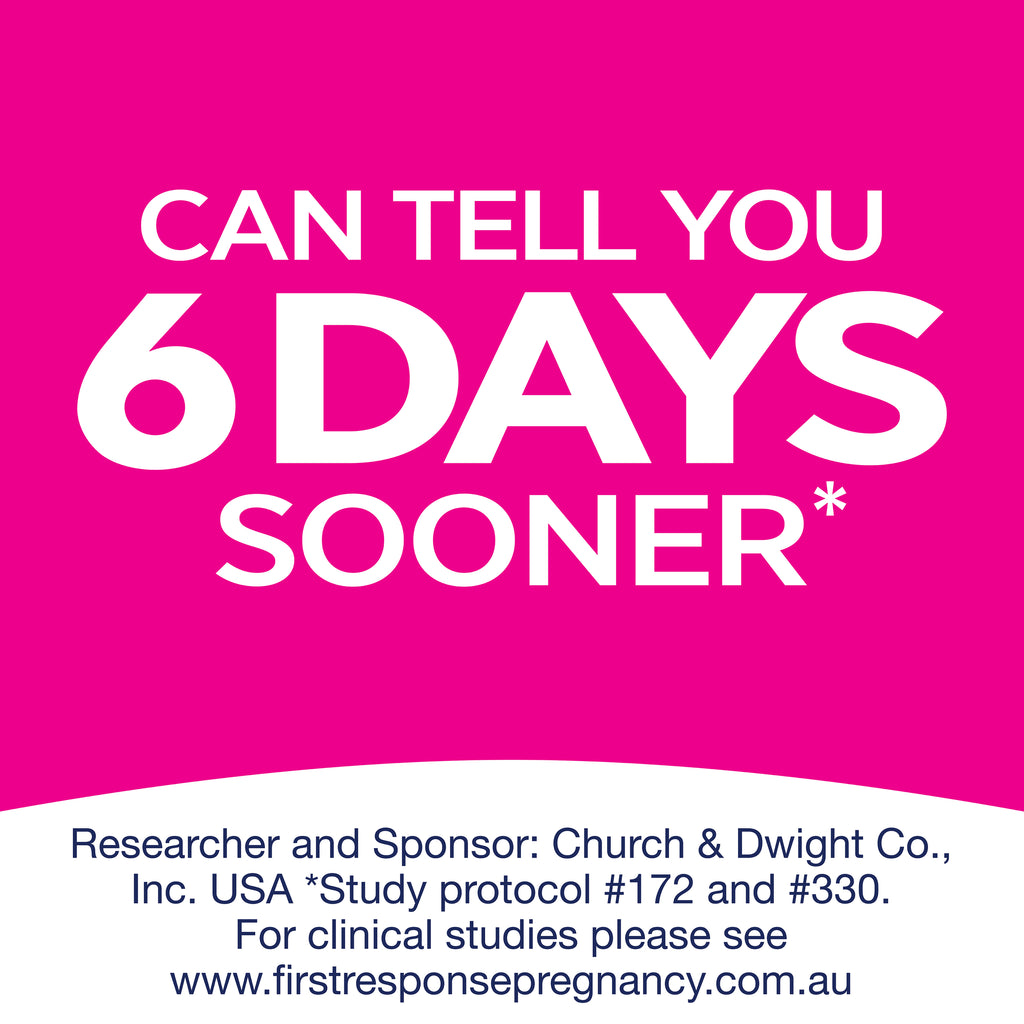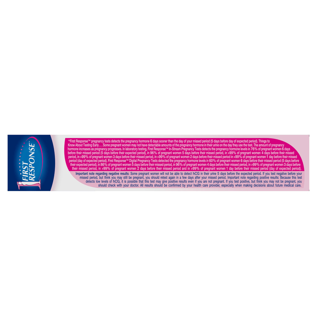 The First Response™ Early Result In-Stream Pregnancy Test is sensitive enough to give you results 6 days before your missed period (5 days before the day of your expected period)¹. When a positive result is indicated, the First Response™ Digital Pregnancy Test can be used to confirm the result. It offers you easy to read Yes+ / No- results with a unique ‘test is working’ indicator that lets you know the test is ready for use and is over 99% accurate².Researcher and Sponsor: Church & Dwight Co., Inc. USA¹Study protocol #172 and #330: To determine First Response In Stream pregnancy test’s ability to detect hCG hormone as an aid in the early detection of pregnancy. More information: https://firstresponsepregnancy.com.au/our-products/in-stream-test/²Study protocol #187: To determine First Response In Stream pregnancy test’s analytical accuracy of over 99 % and results in 3 minutes. More information: https://firstresponsepregnancy.com.au/our-products/in-stream-test/3Study protocol #332: First Response Digital pregnancy test’s analytical accuracy. More information - https://firstresponsepregnancy.com.au/our-products/digital-test/ALWAYS READ THE LABEL AND FOLLOW THE DIRECTIONS FOR USE.CAUTION: This product contains a lithium coin battery. This battery is hazardous and must be kept away from children. It can cause severe or fatal injuries in 2 hours or less if it is swallowed or placed inside any part of the body.