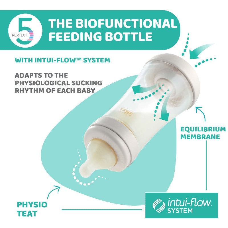 Chicco Perfect 5 Bottle 300ml 4M+ Fast Flow Blue