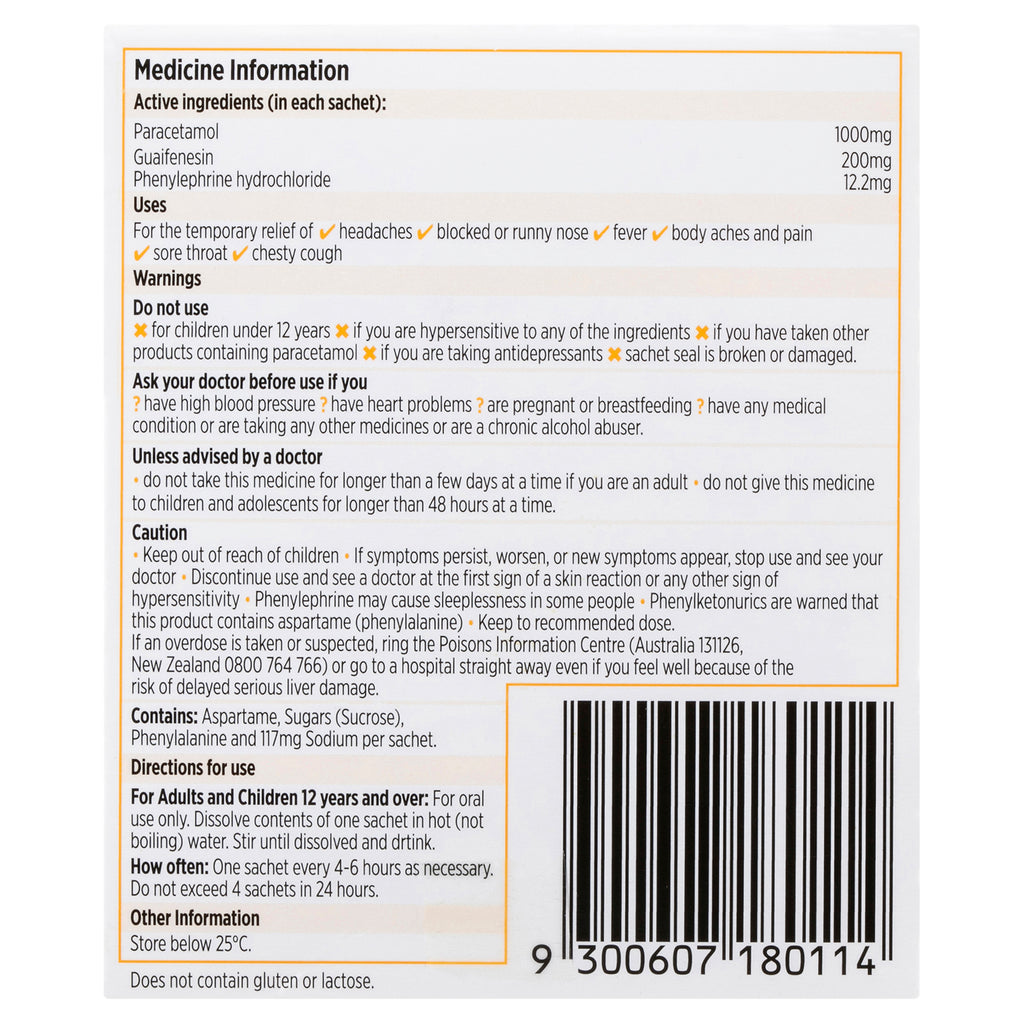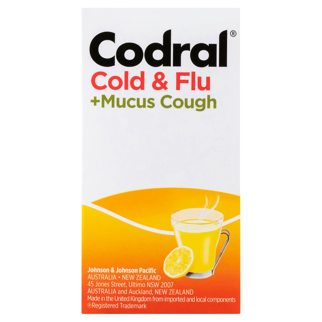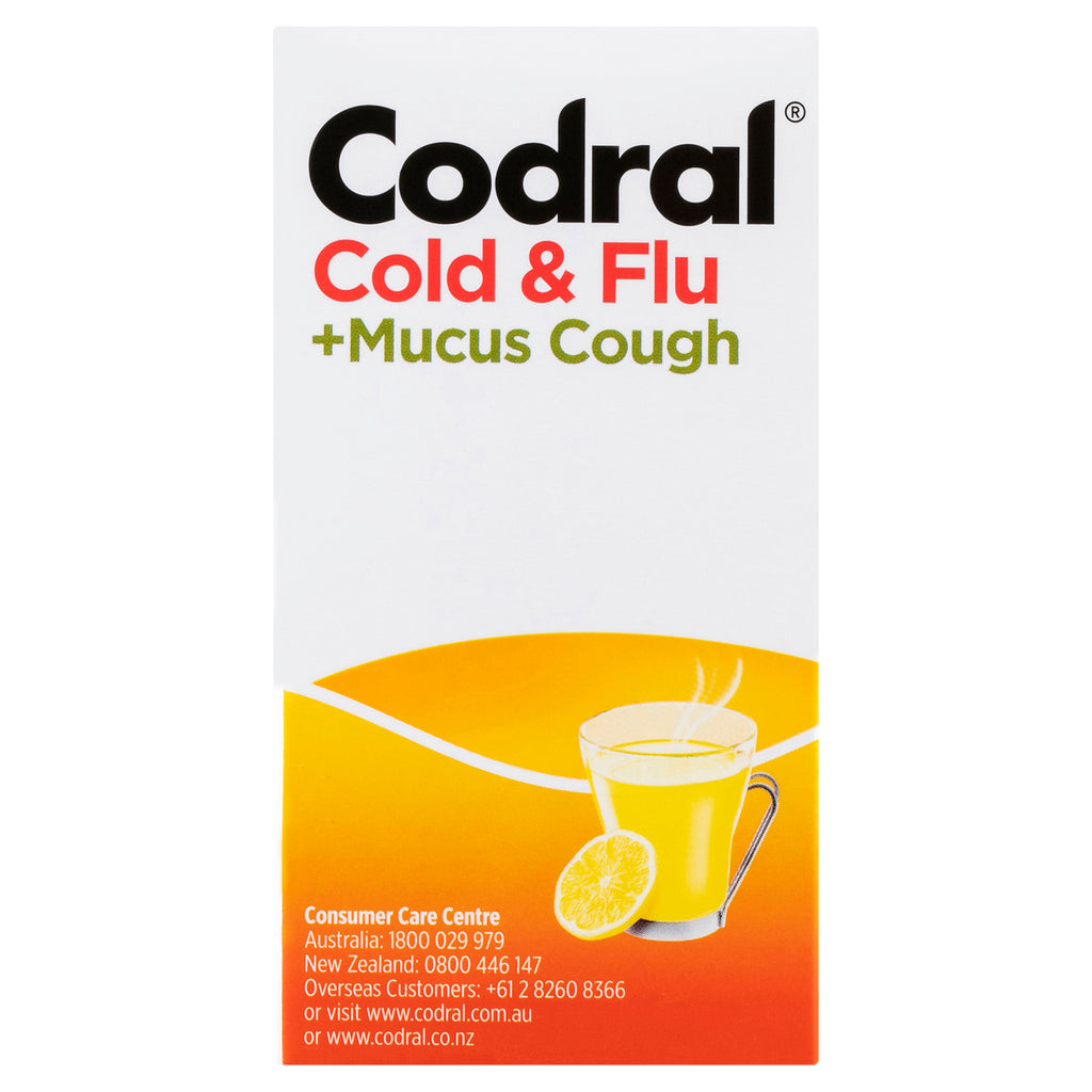 Codral Cold & Flu + Mucus Cough Max Strength Hot Drink Oral Powder Lemon 10 Pack