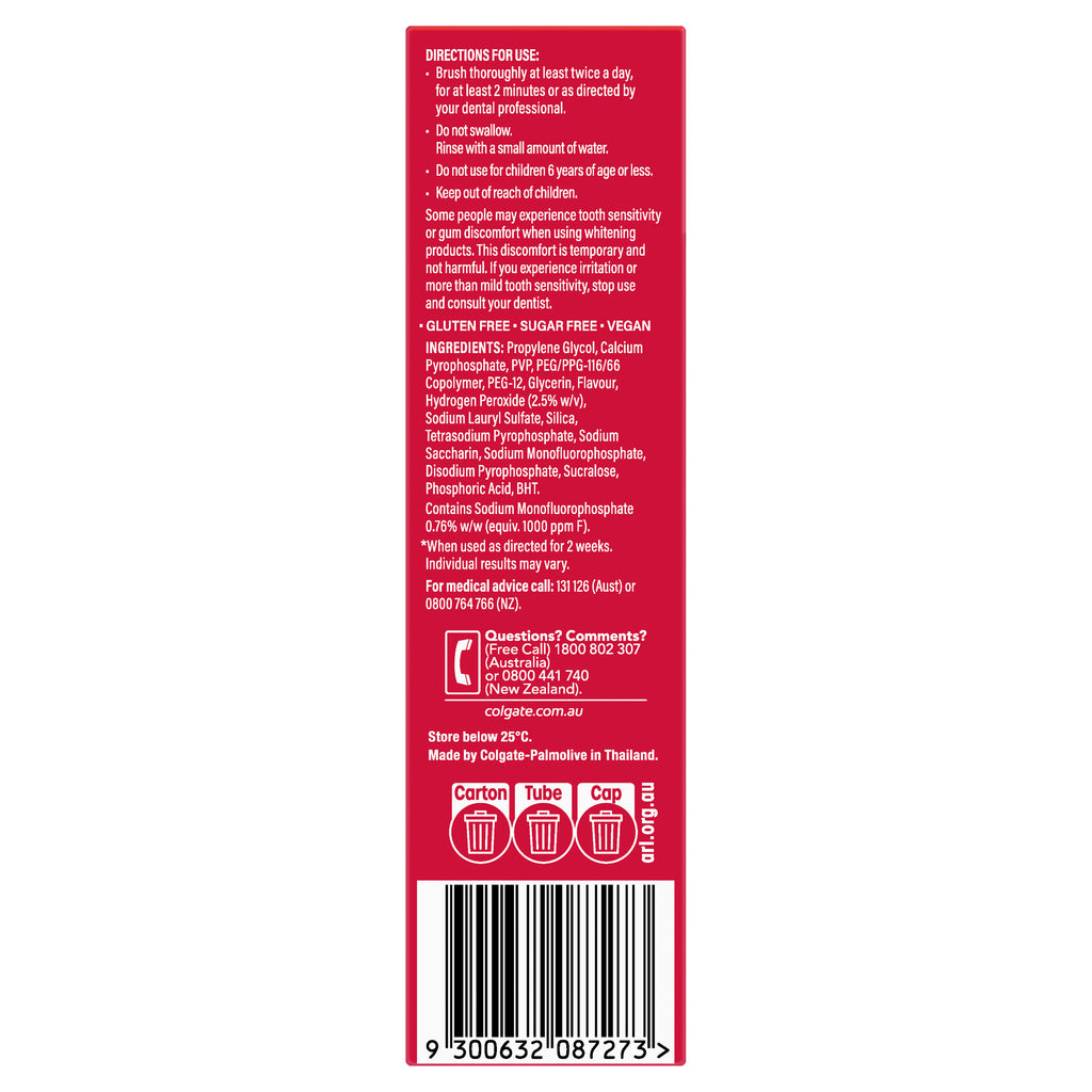 Colgate Optic White Expert High Impact Teeth Whitening Toothpaste, 85g with 2% Hydrogen Peroxide