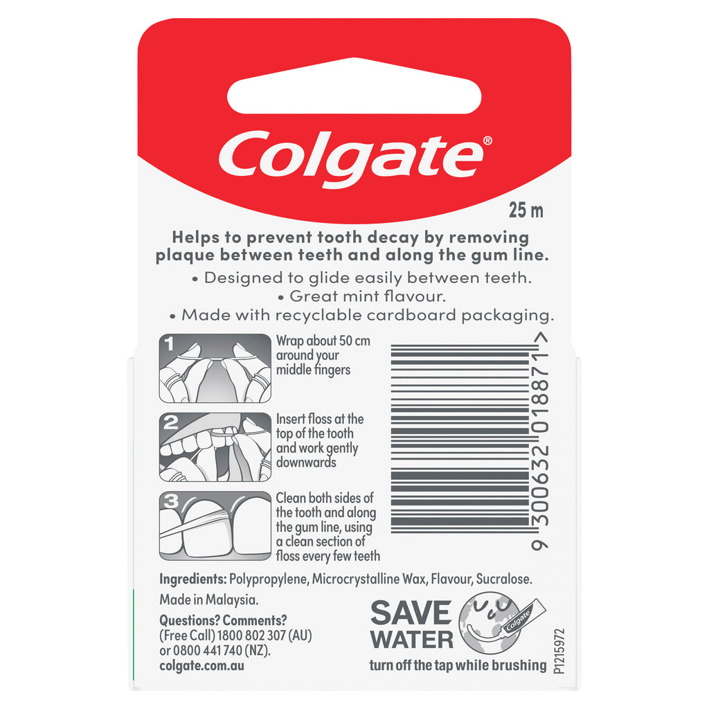Colgate Total Mint Waxed Dental Floss, 25m, Protects Gums & Helps Prevent Tooth Decay