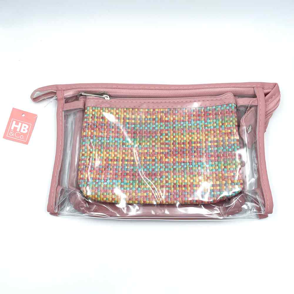 This Cosmetic Bag Set in deep pink is perfect for organizing your makeup. It includes two bags and a clear holder, providing ample storage for your cosmetics. Its lightweight design is ideal for taking on the go.