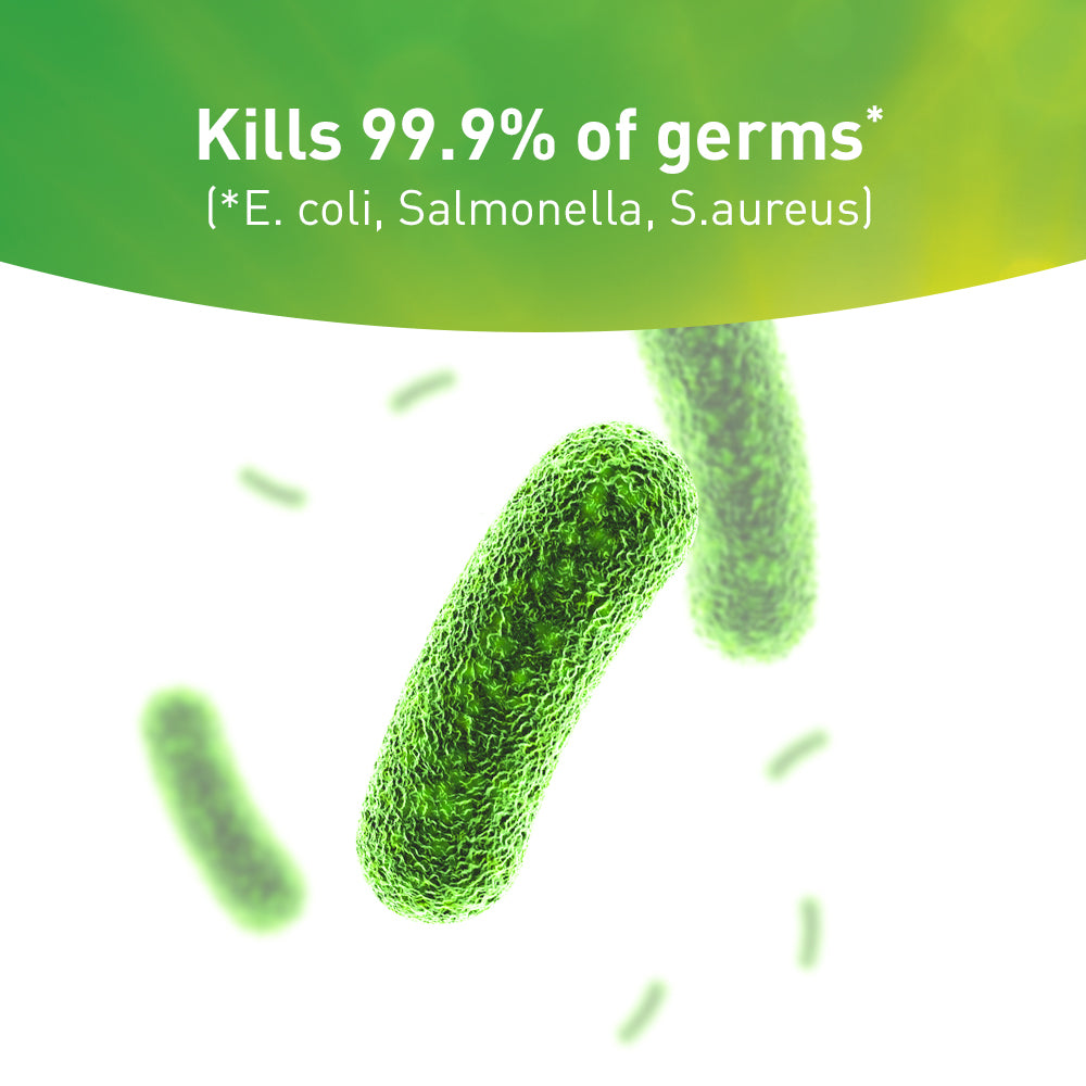 A Hospital Grade disinfectant – it kills 99.9% of germs, including E. Coli, Salmonella & Staphylococcus.