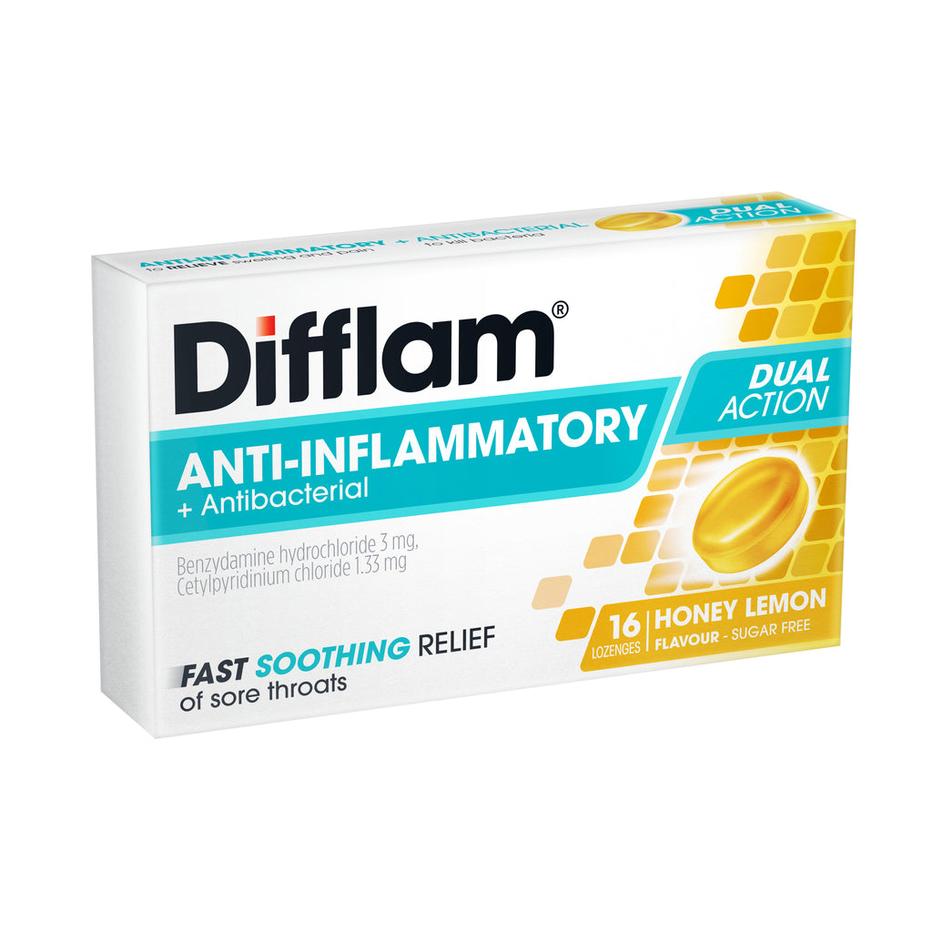 Difflam Sore Throat Lozenges Sugar Free Honey & Lemon 16 Pack