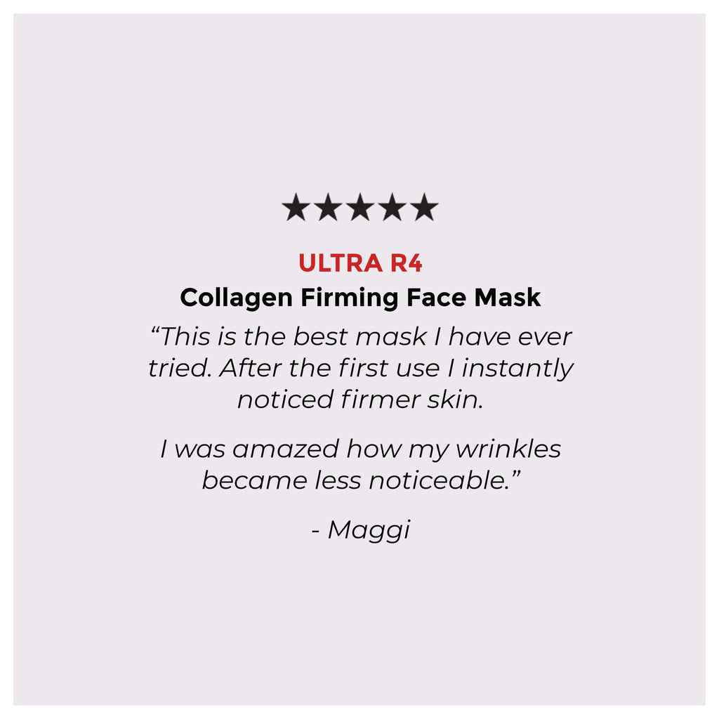 Ultra R4 Collagen Firming Face Mask is a luxurious mask using Bio-Cellulose technology, which acts like a second skin to adhere perfectly to the face and delivers an instant moisture surge. Loaded with a highly potent Collagen infused serum to instantly hydrate, plump and restore whilst Matrixyl® 3000 Peptide and Orchid Stem Cell Extract help to promote skin elasticity and firmness. - Dermatologist tested - 100% biodegradable
