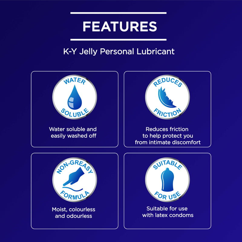 KY Jelly Lubricants are ideal for helping to relieve discomfort from vaginal dryness. The lube is designed to supplement your body's own natural lubrication. It is a moist, colourless, odourless and non-greasy water-based gel that reduces friction to help protect you from intimate discomfort.