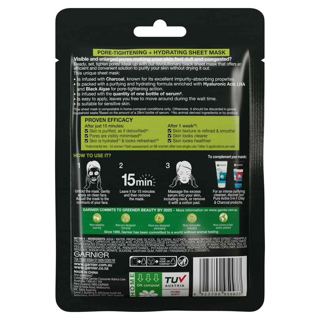 Garnier Pure Charcoal Hyaluronic Acid + Black Algae Sheet Mask 28g