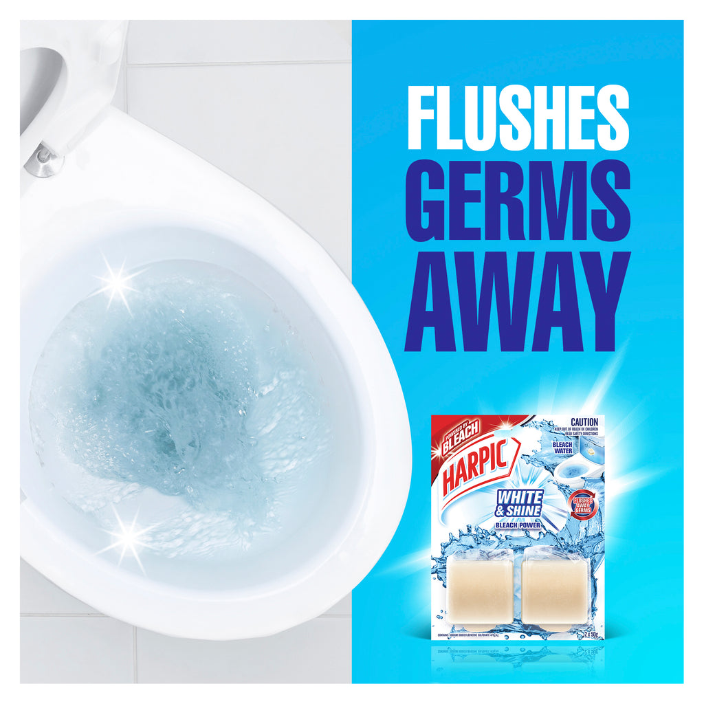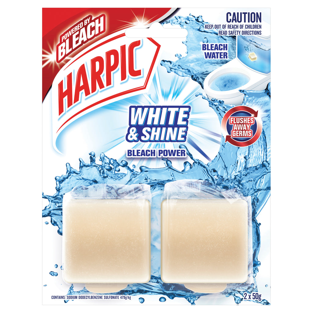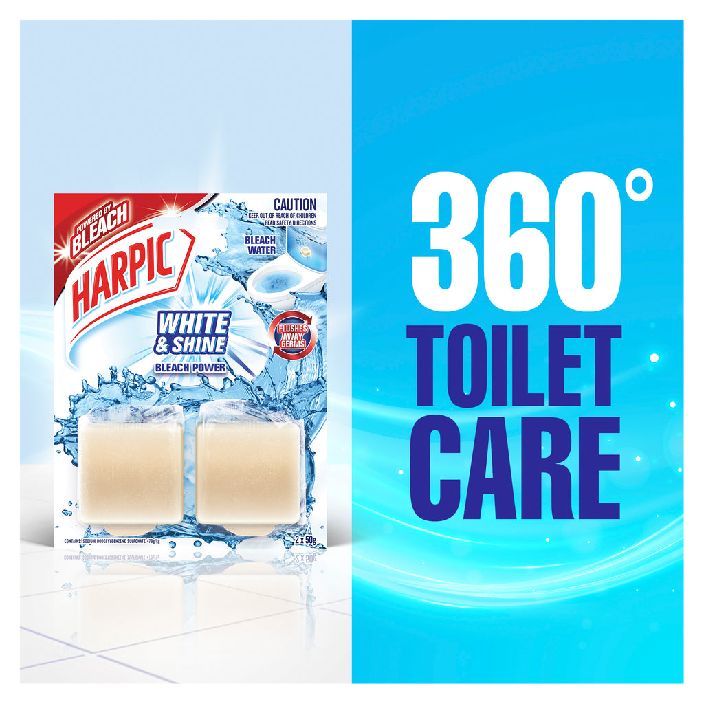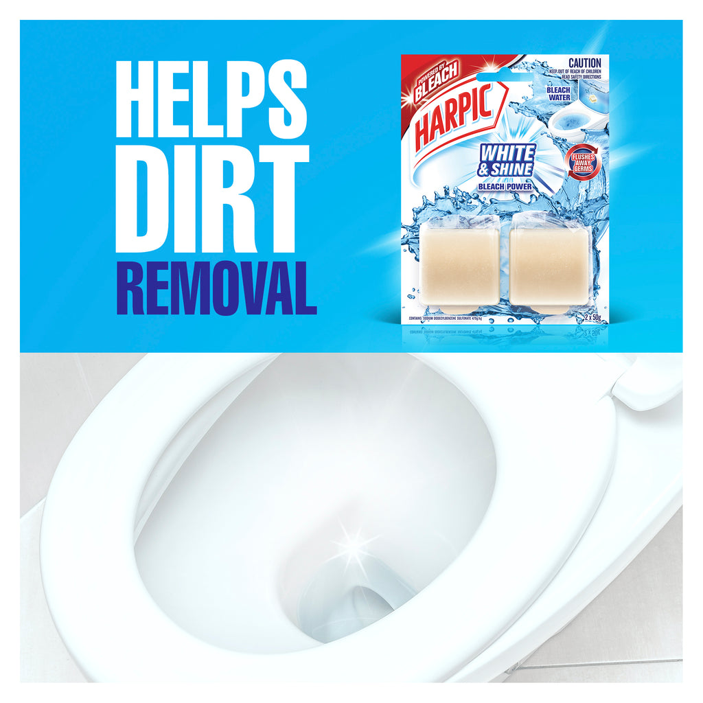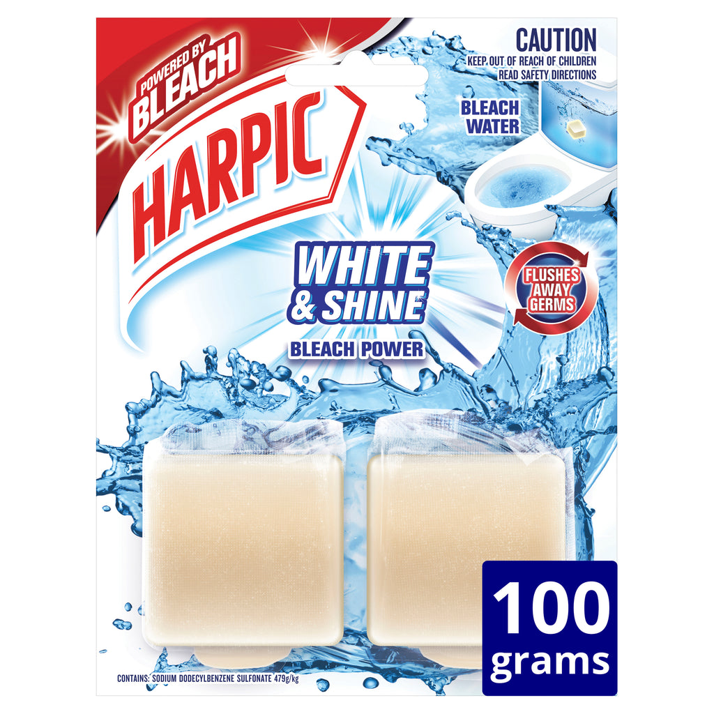 Harpic White & Shine Toilet Cistern Cleaner is an easy to use cistern block that releases powerful foaming bleach cleaning detergent. It hygienically cleans and freshens your toilet with every flush. Harpic Toilet Block cleans from the cistern to below the waterline.