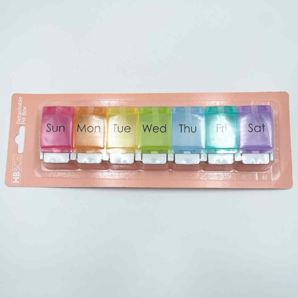 Keep your medication organized with HB&Co's detachable 7 day pill box. The brightly coloured container provides individual storage of up to seven days' worth of pills for easy tracking. Keep your medication easy to find and manage with HB&co.