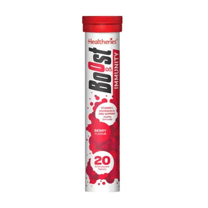 Healtheries Boost® Immunity combines Vitamin C (often known as “the immunity vitamin”) with Zinc and Echinacea for fast, fun, powerful immune support. And the effervescent, aspartame-free tablets dissolve quickly in water to create a fizzy, orange-flavoured drink that your body immediately absorbs.