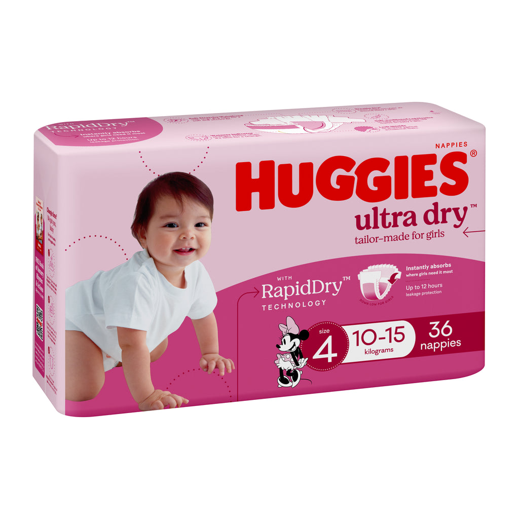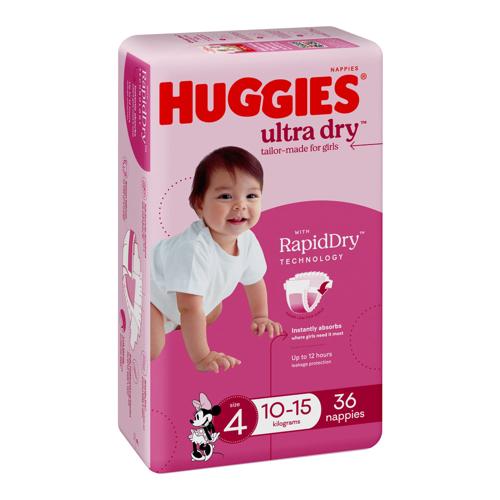 Huggies Ultra Dry Nappies Girl Size 4 (10-15kg) 36 Pack