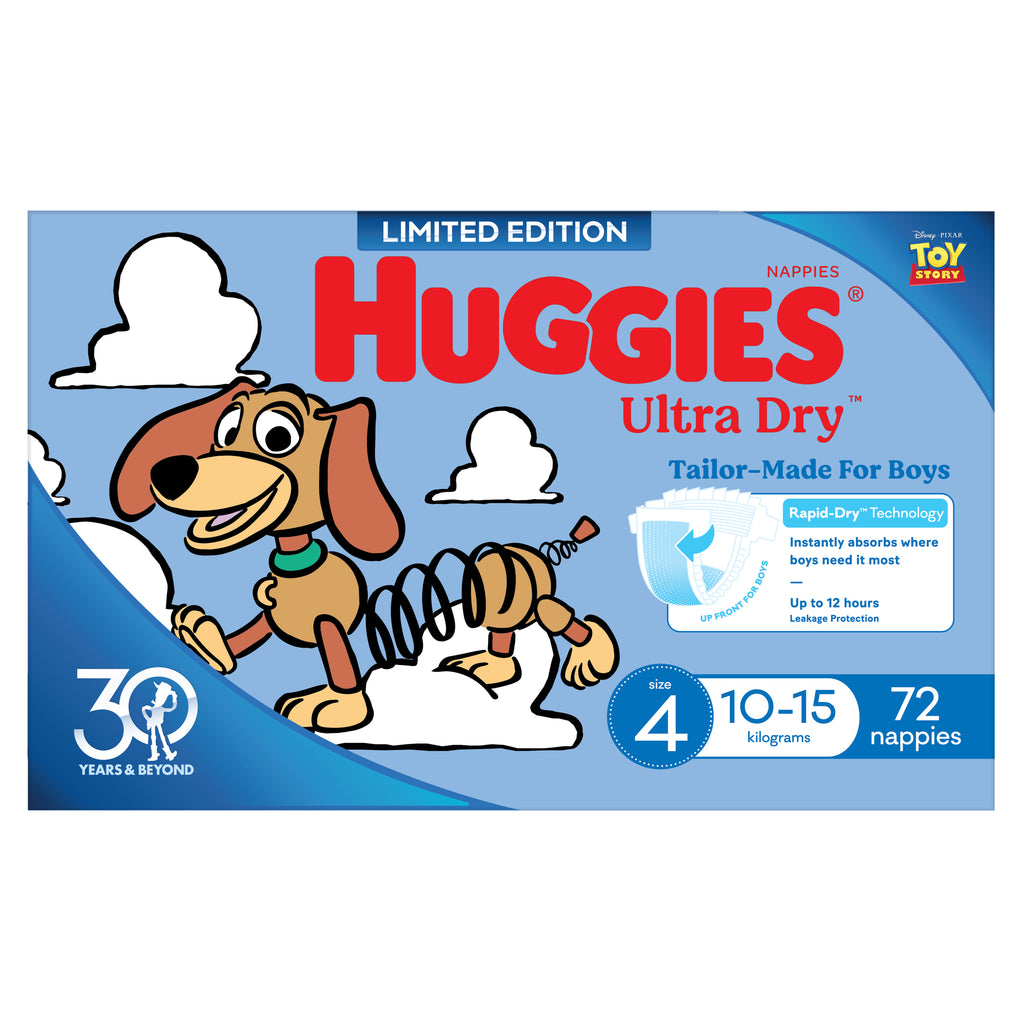 Huggies Ultra Dry Nappies, Boys, Size 4 (10-15kg), 72 Pack (Jumbo)
