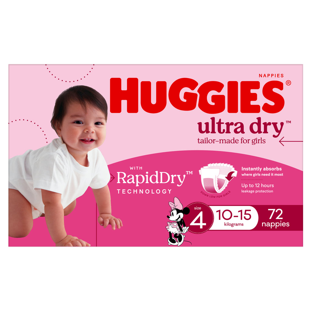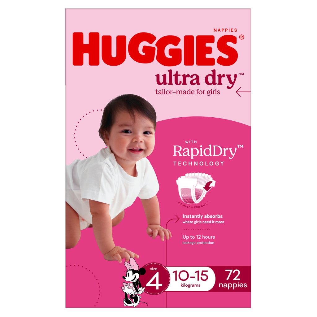 Huggies Ultra Dry Nappies Girls Size 4 (10-15kg) 72 Pack