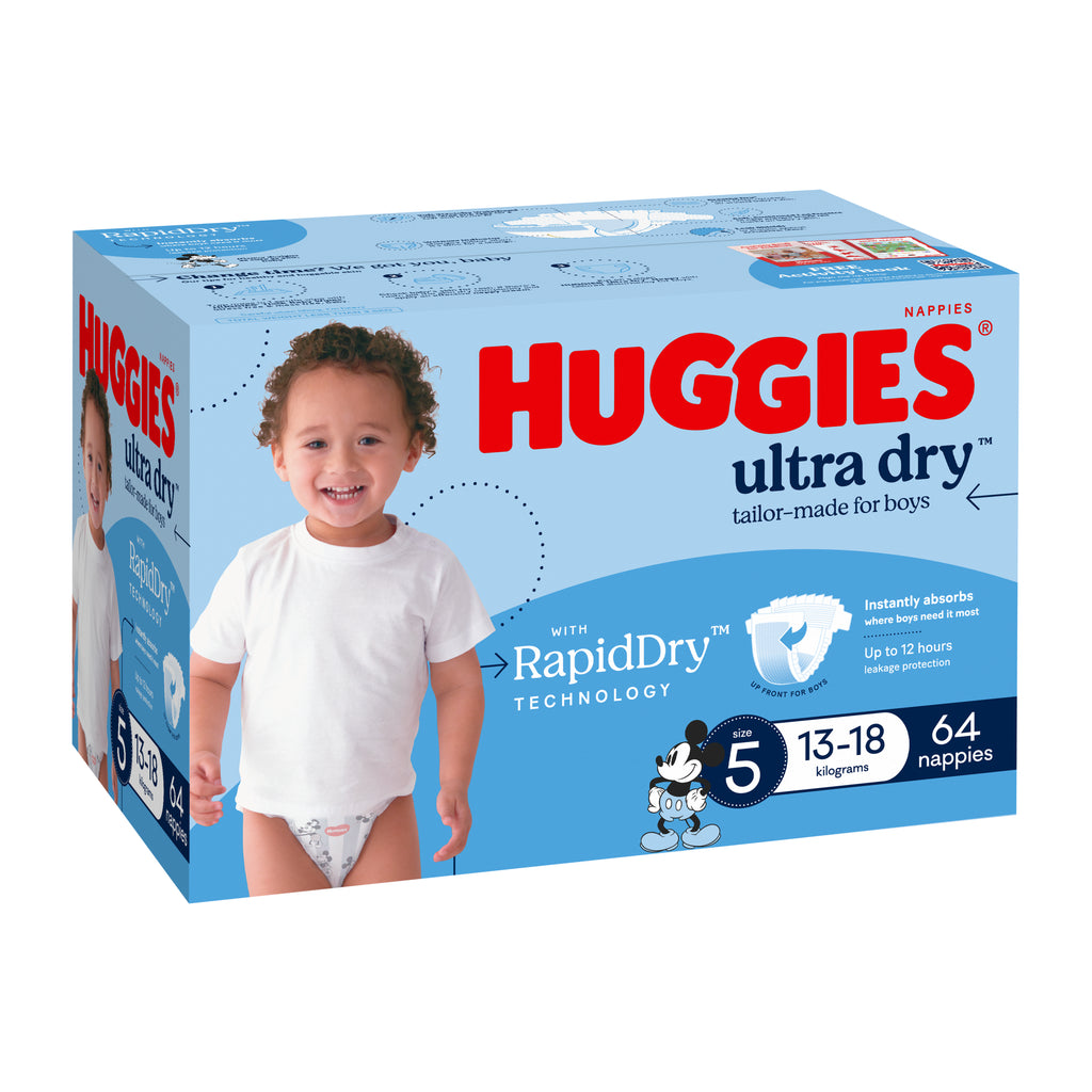 Huggies Ultra Dry Nappies Boys Size 5 (13-18kg) 64 Pack