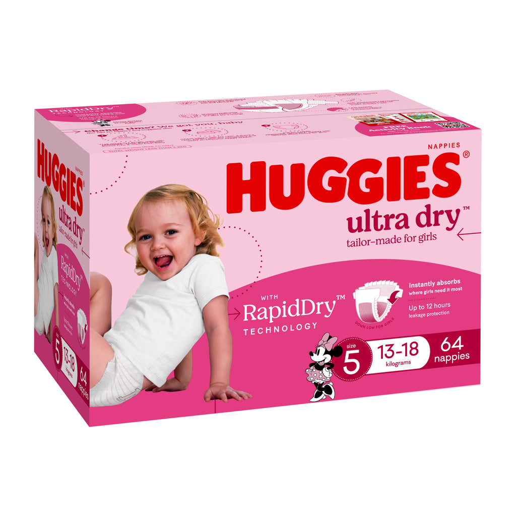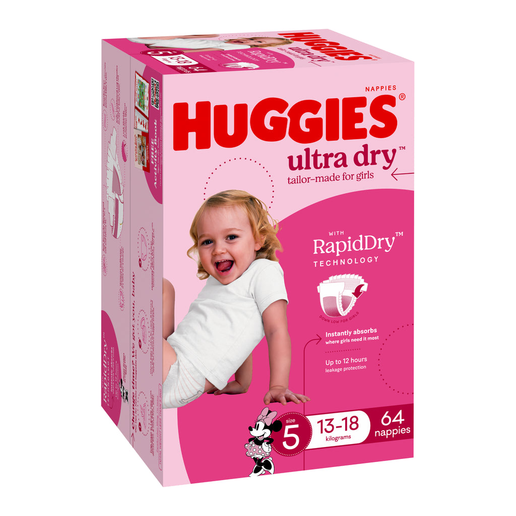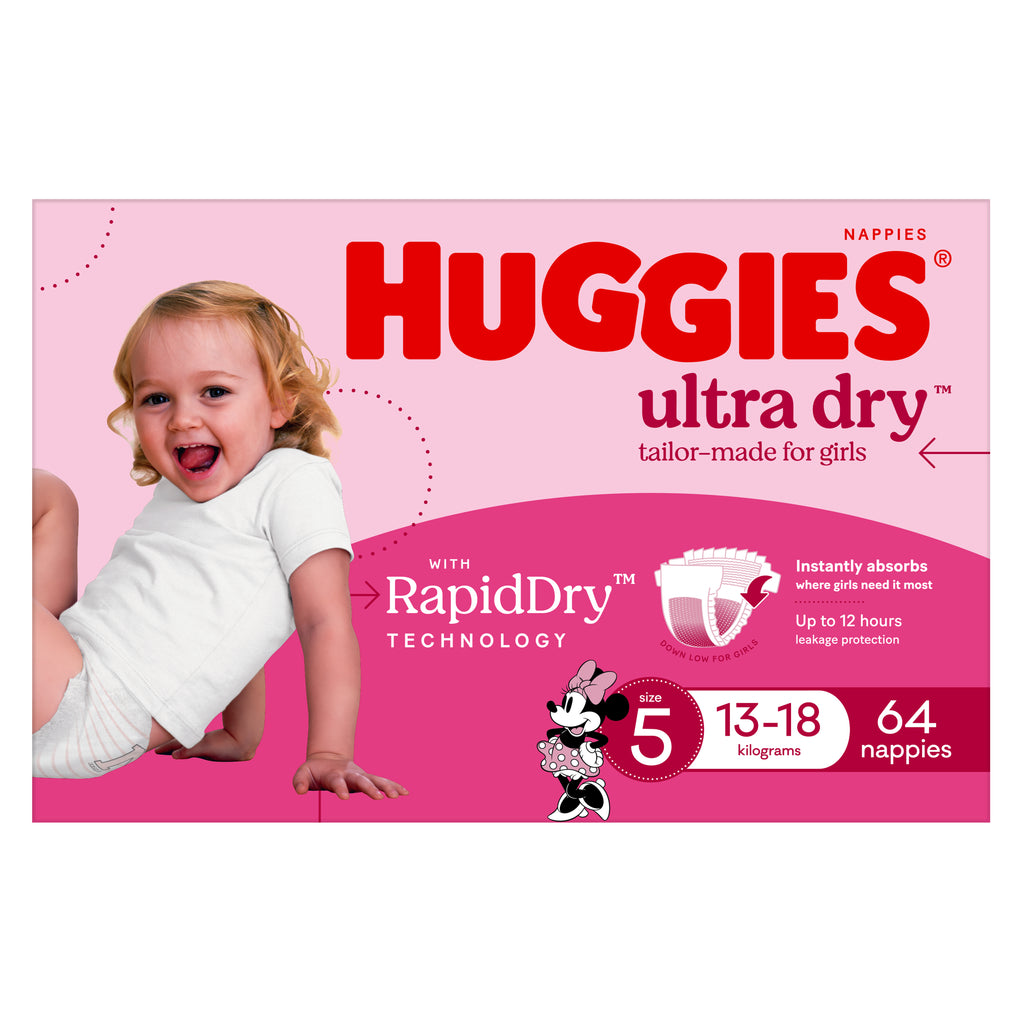 Huggies Ultra Dry Nappies Girls Size 5 (13-18kg) 64 Pack