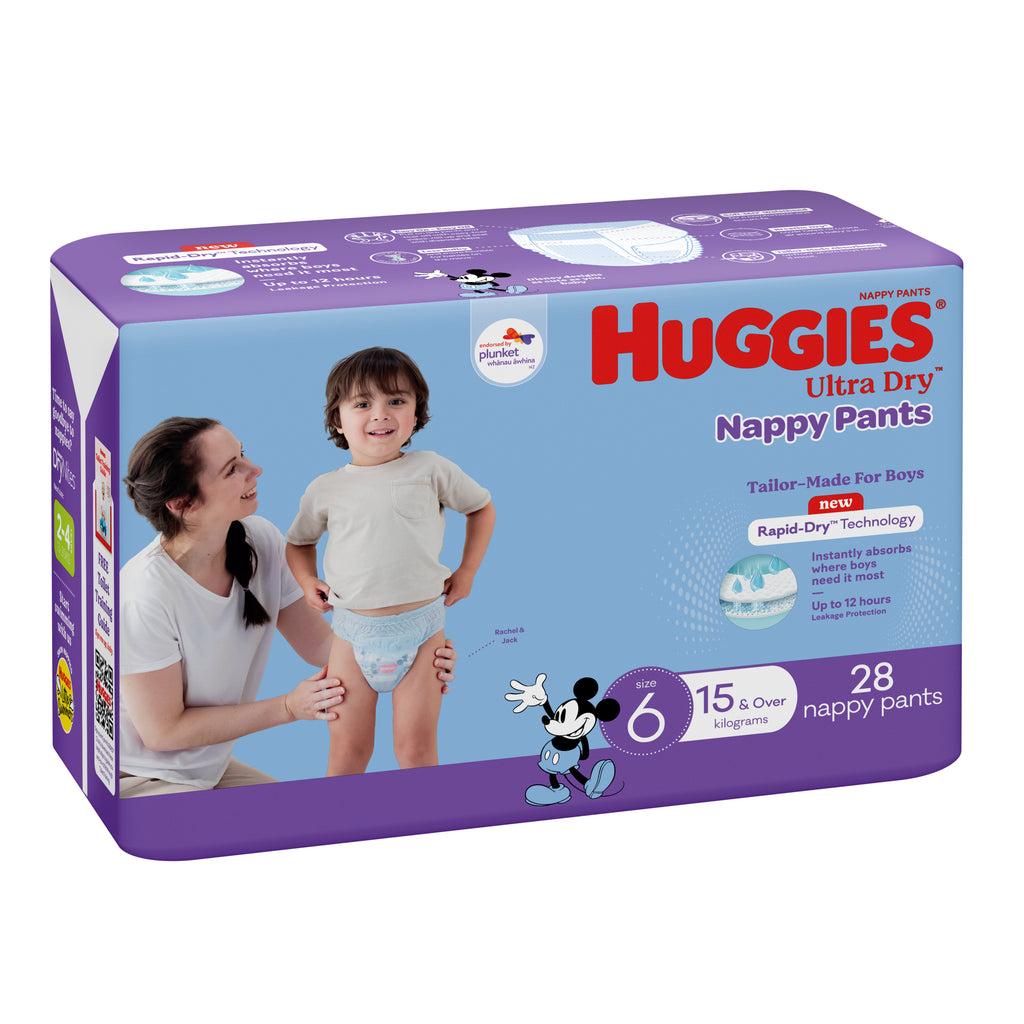 Huggies Ultra Dry Nappy Pants Boy Size 6 (15kg & over) 28 Pack