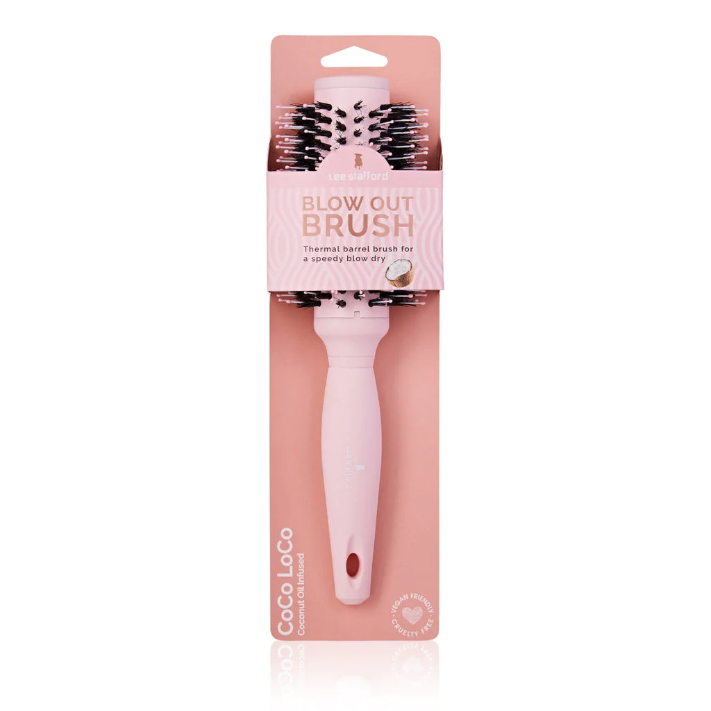 Lee Stafford Coco Loco Blow Out Brush, the key to a flawless blow dry. This radial brush that smoothes hair and adds volume while being infused with coconut oil for the most bouncy blow dry ever.