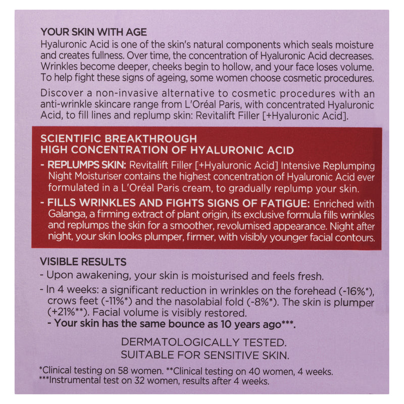 L'Oréal Paris Revitalift Filler Hyaluronic Acid Replumping Night Moisturiser 50ml