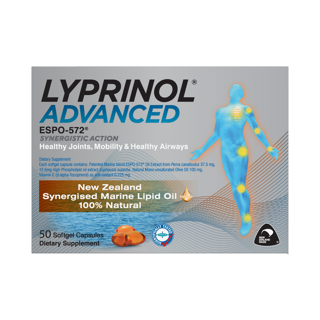 Lyprinol Advanced supports: • Joint mobility and function• Helps support healthy airways and breathing passages• Rich in omega-3s essential for general well-being