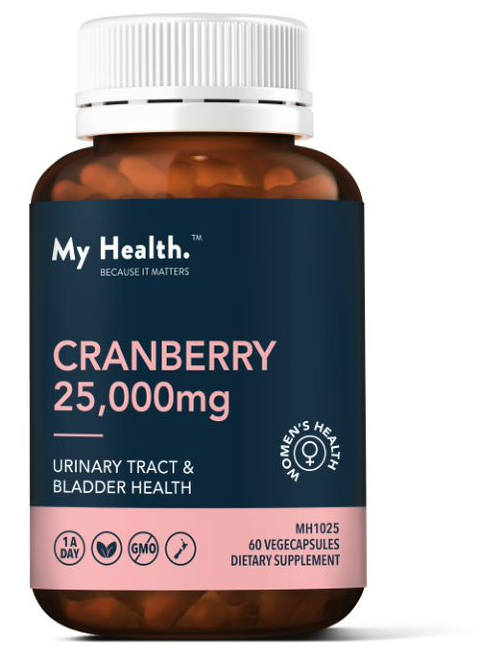 My Health Cranberry 25,000mg Is specifically formulated to support urinary tract and bladder health. Containing high strength Cranberry, a powerful antioxidant that helps to soothe and support the urinary tract lining. My Health Cranberry 25,000mg can be taken to support a healthy urinary tract and is supplied in the convenience of a one-a-day dose.