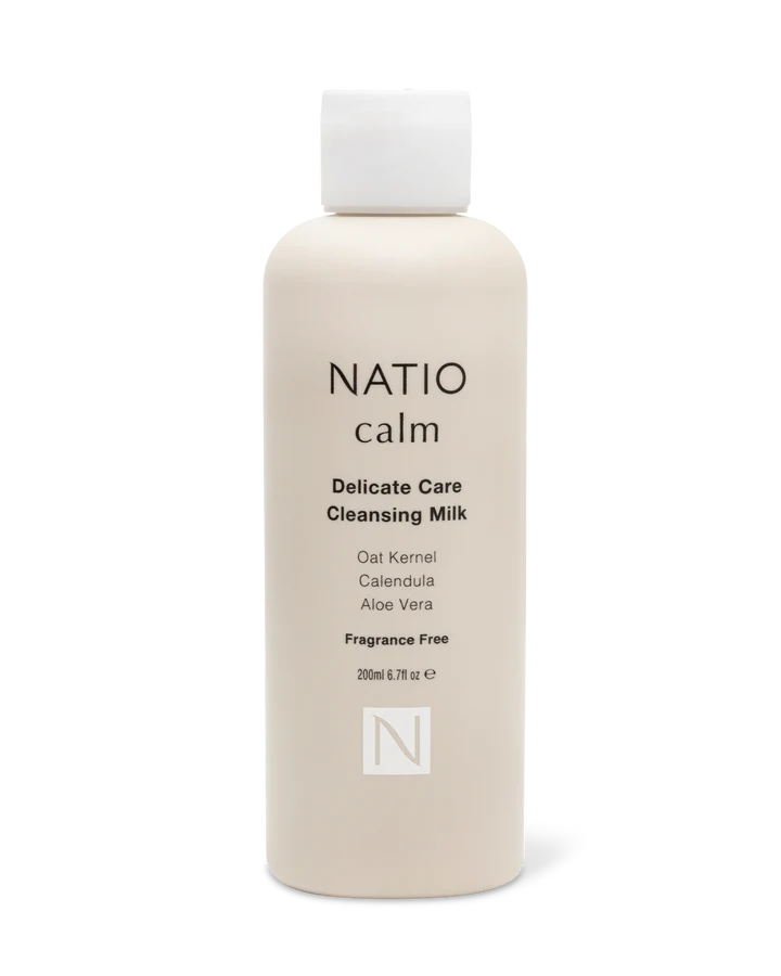 A calming cleanser for delicate skin, this extra gentle milk works with Calendula and Oat extracts to help soothe and reduce the appearance of redness during cleansing. Aloe cools and hydrates. Fragrance-free and sensitivity tested. Made in Australia.