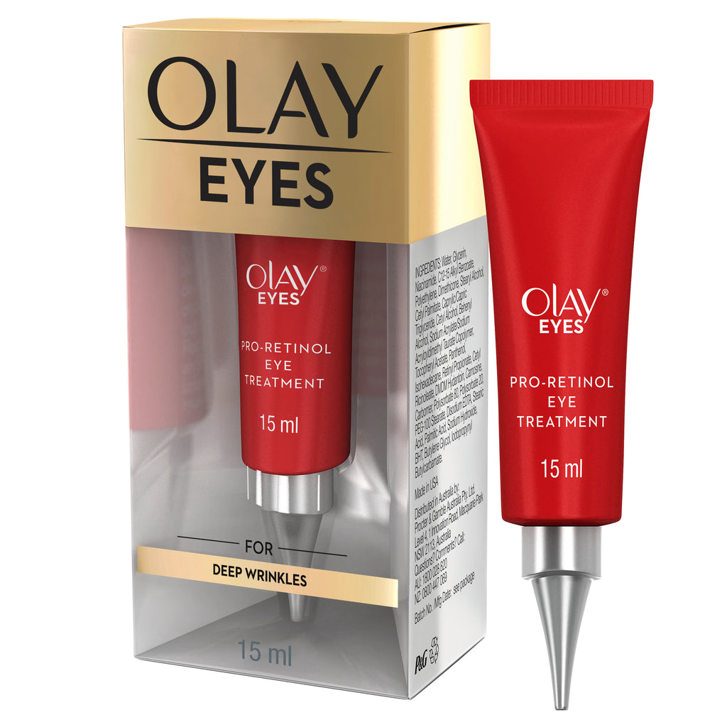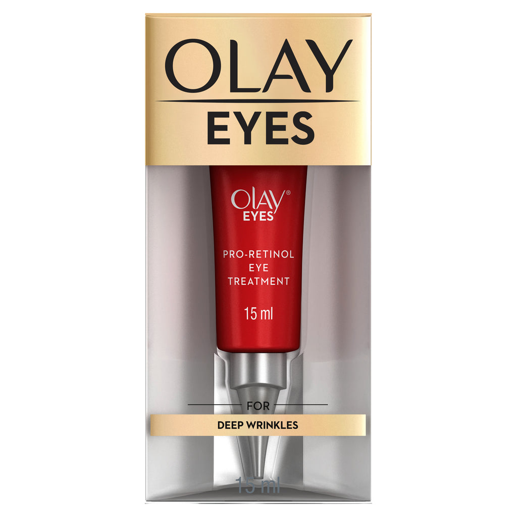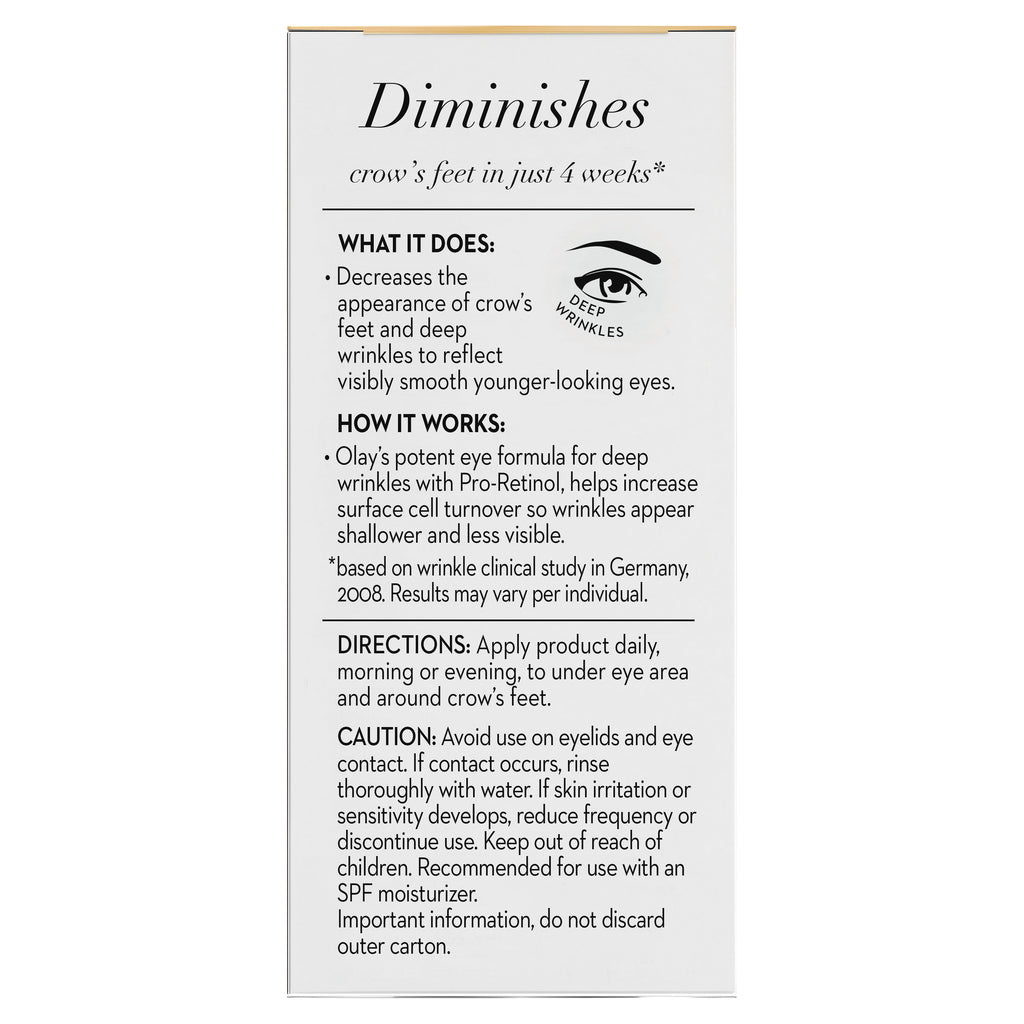 Olay’s best wrinkle-fighting ingredient is now in an eye cream! Olay Eyes Pro-Retinol Eye Treatment visibly reduces crow’s feet & deep wrinkles in just 4 weeks. Formulated with Olay’s best wrinkle-fighting ingredient: pro-retinol. It's gentler than other prescription retinoids and designed for the delicate skin around the eyes. Watch your crow’s feet take flight with Pro-Retinol Eye Treatment.