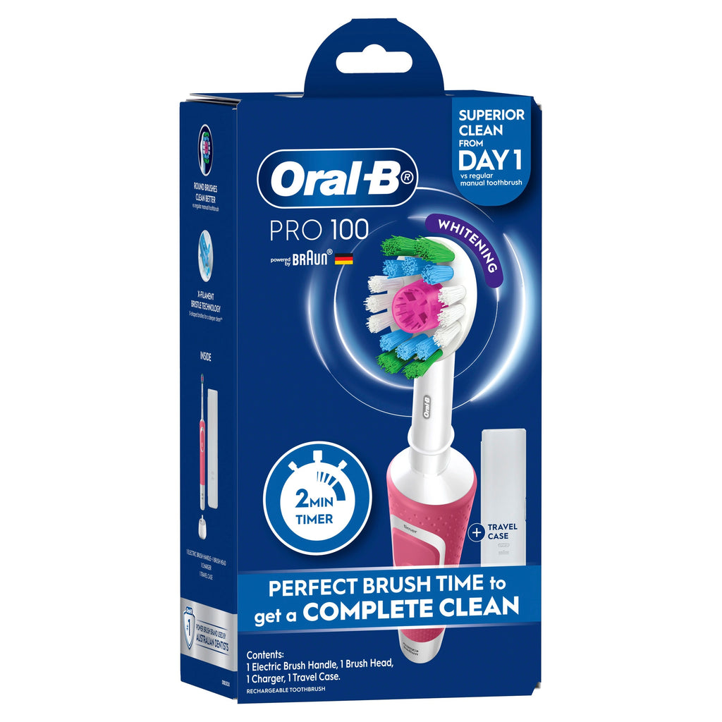 Oral-B Pro 100 Pink Electric Toothbrush with 3D Polish Whitening Head