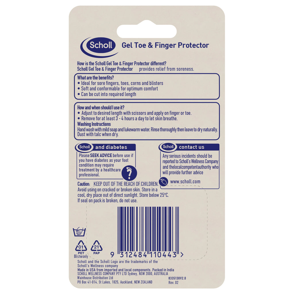Scholl Gel Toe & Finger Protector provides relief from soreness.