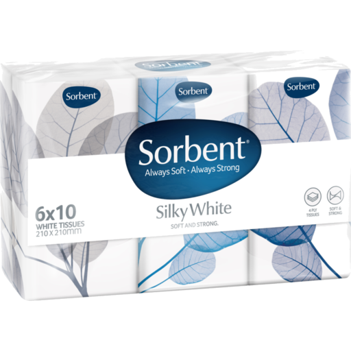 Sorbent Silky White pocket packs are 6 individual packs with 10 white 4 ply tissues per pack.