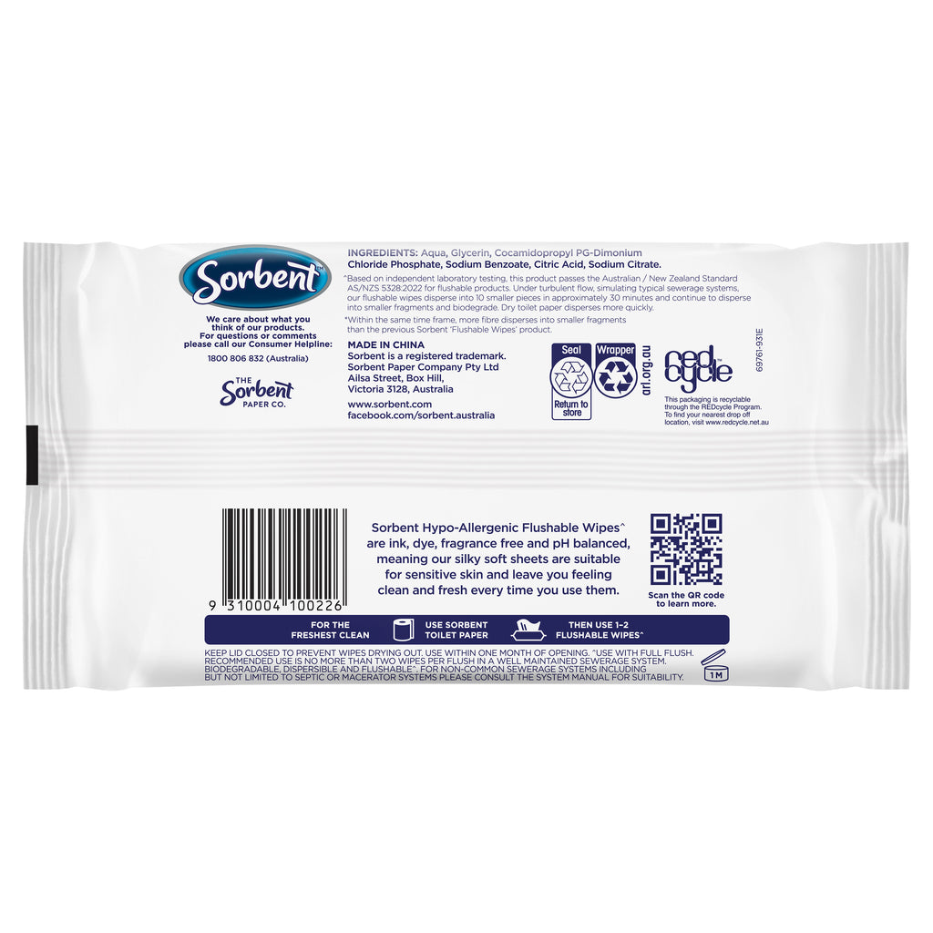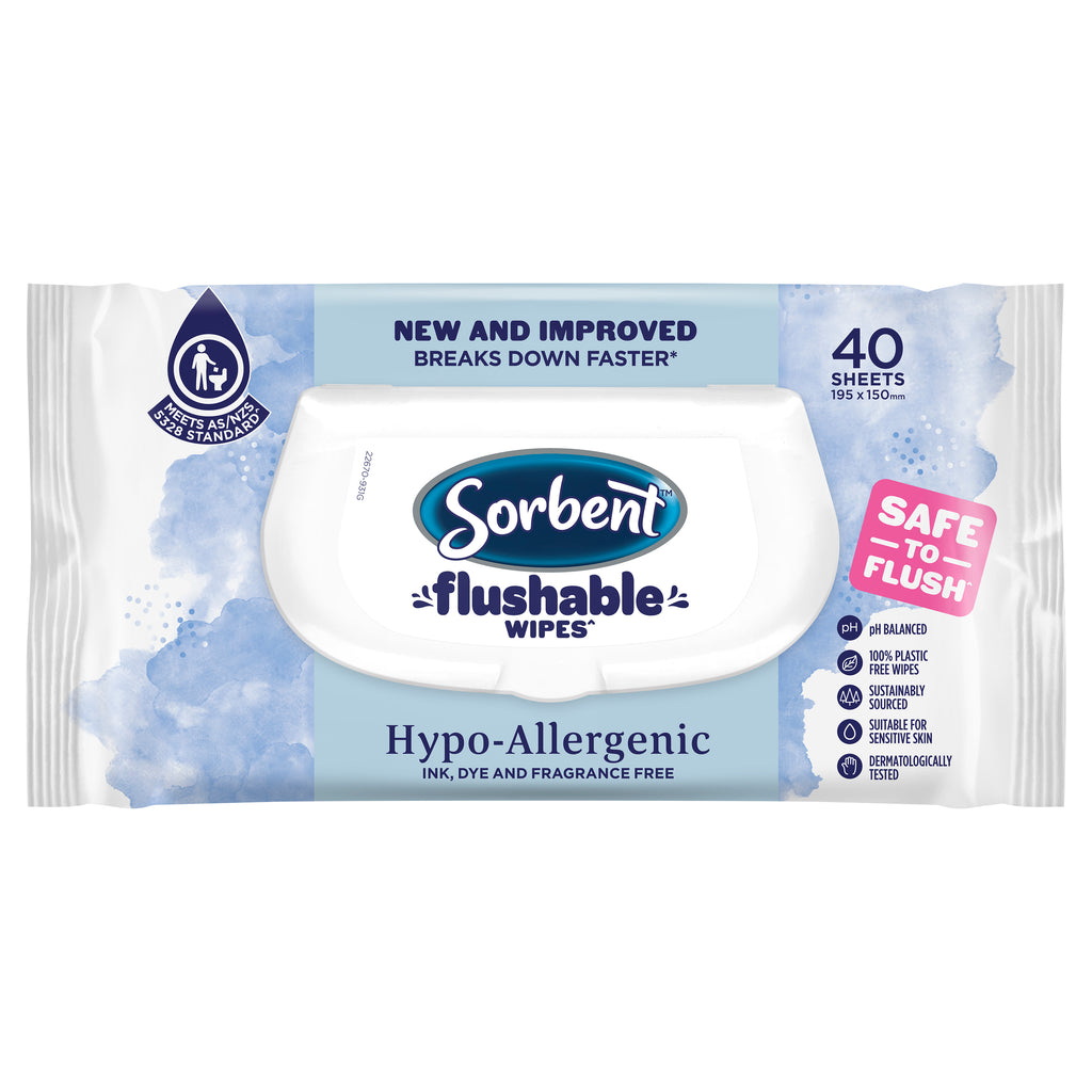Sorbent Hypo-Allergenic Flushable Wipes 40 Pack