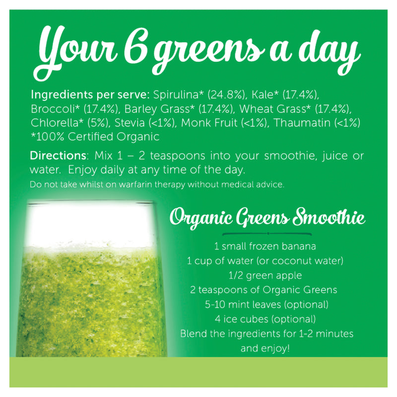 A Powerful Combination Of Nature's GreensOrganic Greens is a combination of 6 nutrient rich, green superfood ingredients to support energy, immunity and overall health.*