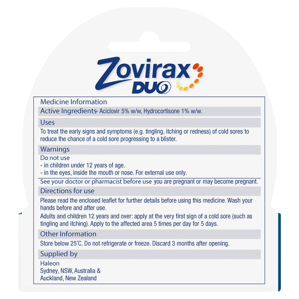 Zovirax Duo Cold Sore Cream 2g ( Pharmacist consult required )